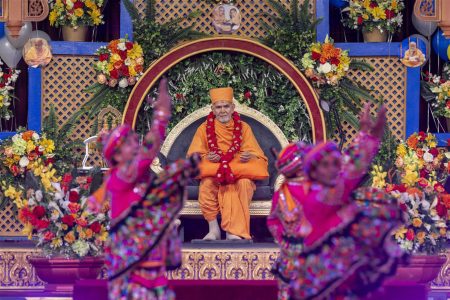 Centered on the theme of “Akshardham Na Balak Ame,” young children performed in a cultural program on September 2, 2023,…